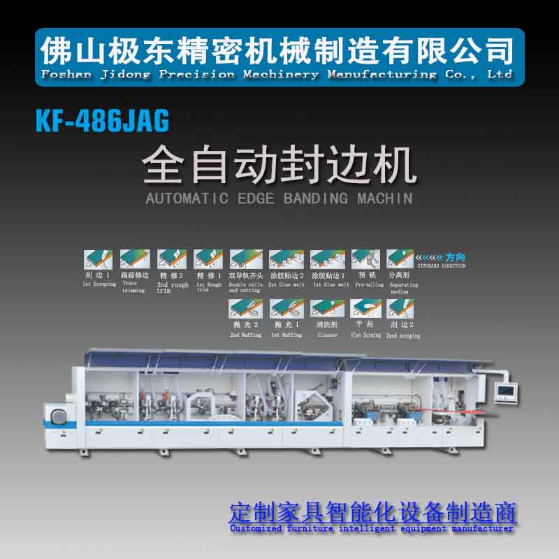 刮边抛光等功能,封边细腻、光滑、手感好,封线平直光滑。该设备运行稳定、可靠耐用、价格适中,尤为适合于大中型家具,橱柜等板式家具的厂家使用。